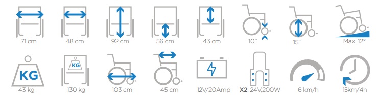 • Velocidad de Crucero: 6 km/h, controlados por un Joystick de alta precisión.